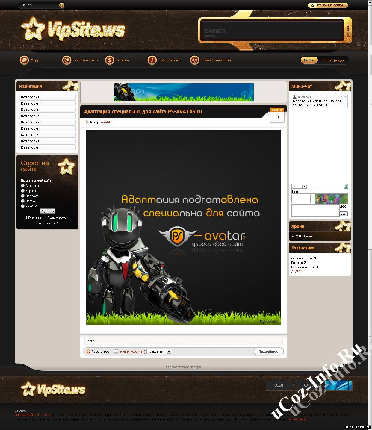 Адаптация шаблона сайта vipsite.ws под ucoz, заточенный под систему ucoz. |